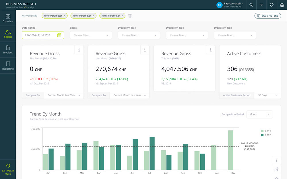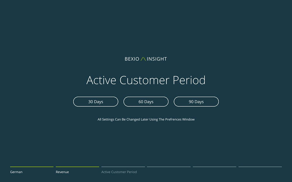 Dashboard and onboarding UX and UI design for Bexio Insight, an analytics platform for the popular Swiss invoice app Bexio.