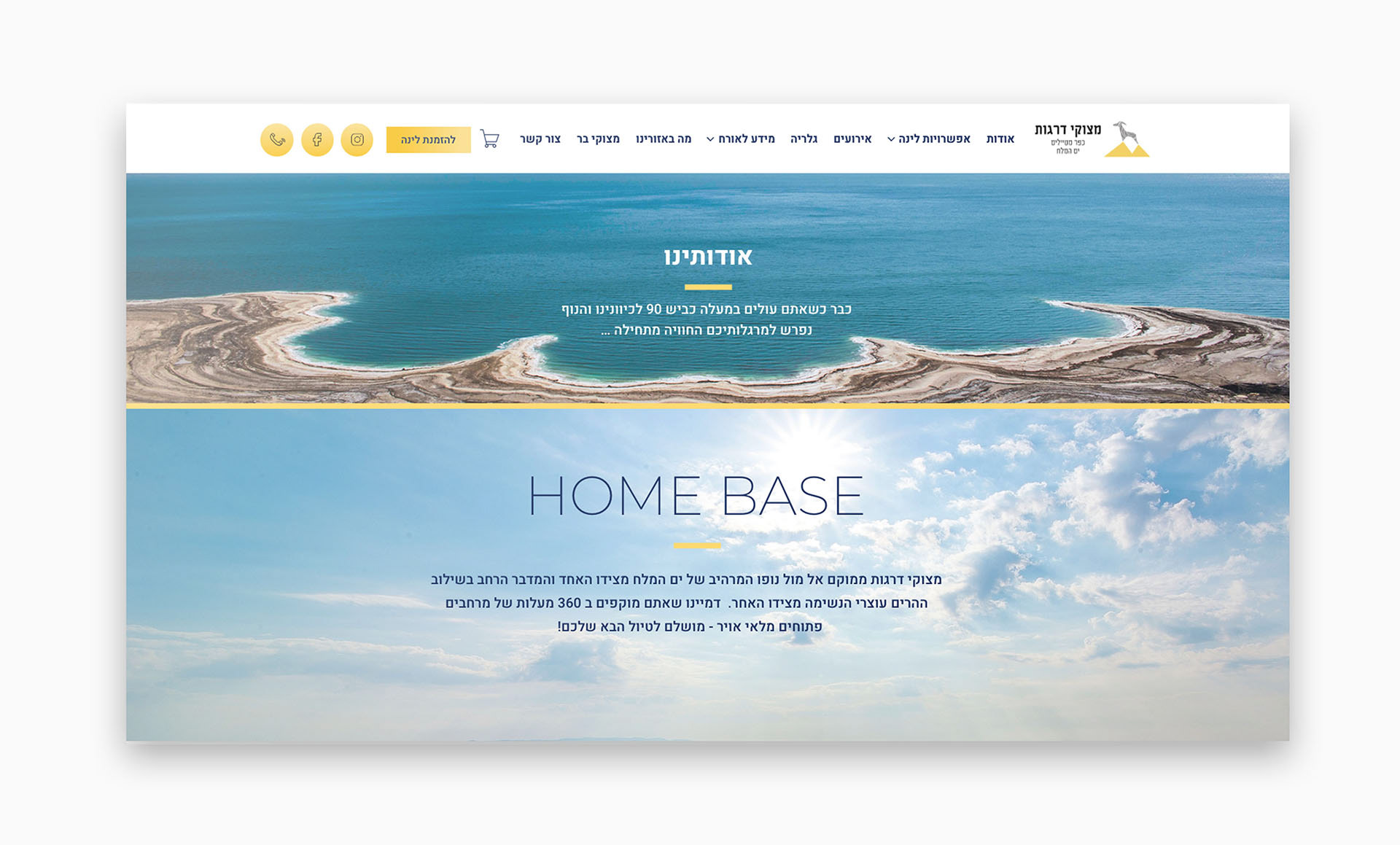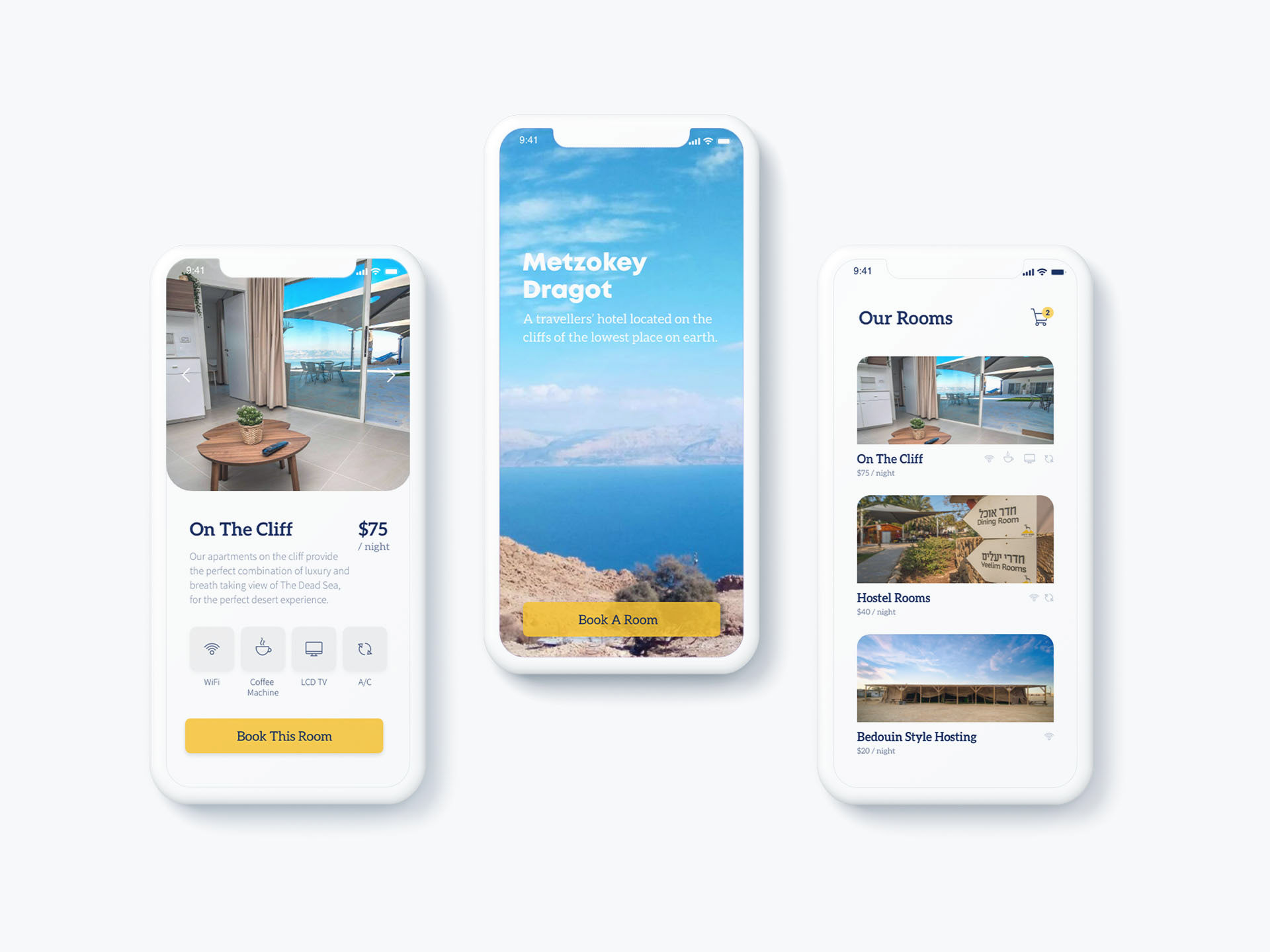 Brand and web design for "Dragot Cliffs", a Dead Sea hotel and lodge. The client wanted the design to show a sense of freedom, and emphasize the breathtaking view from the hotel.