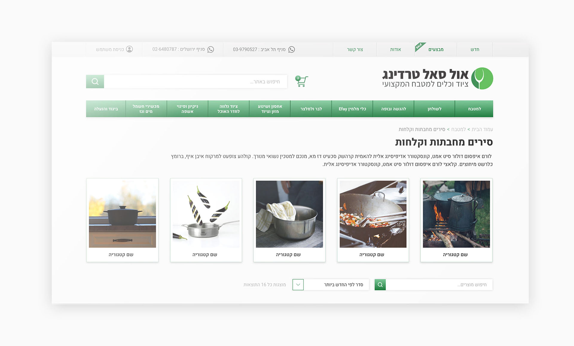 Website design for kitchenware retailer, including UX design for online shop