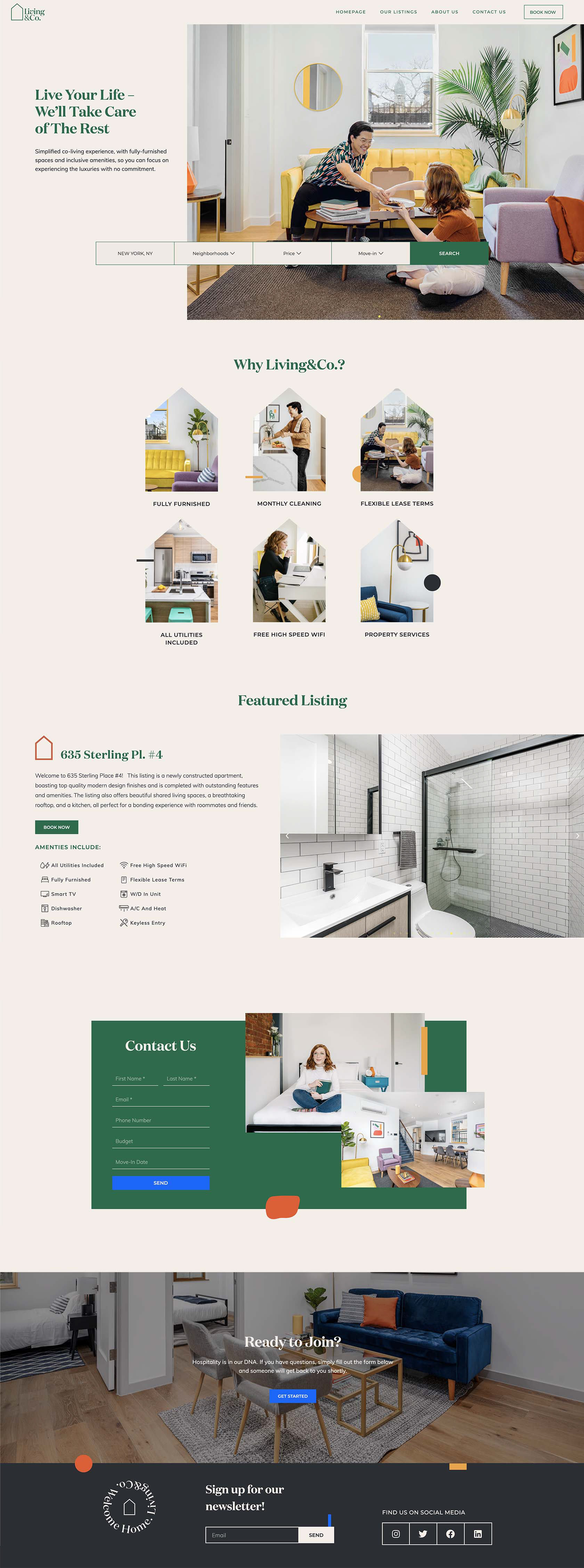 Website design for NYC's new coliving company "Living & Co" (livingnco.com). Brand by lirona.me.
